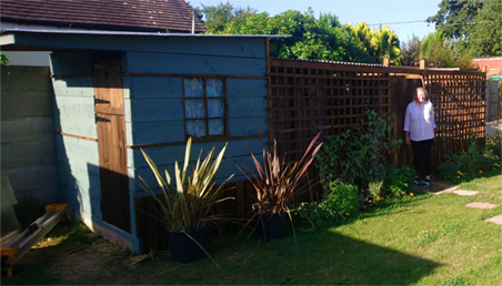 | Measuring 9m accross and 5m deep built on a concrete slab base, this building comprised of 3 rooms. Room 1: 2m x 5m Office spaceRoom 2: 5m x 5m Summer house Room 3: 2m x 5m Shed The shed has a rear door allowing access to the rear of the building for maintenance. Rainwater is guttered at the rear of the roof and drains to a soakaway dug at the rear of the building. The building is full wired with lights and plug sockets |